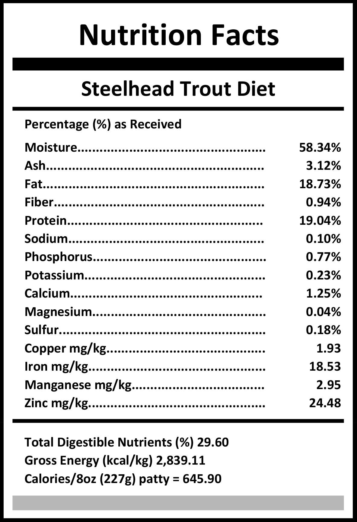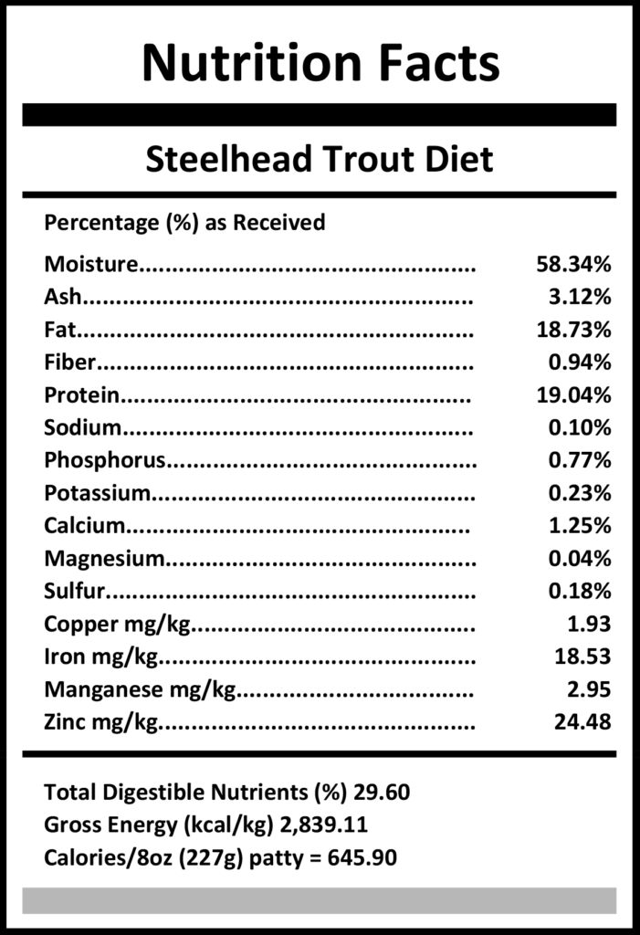 Ingredients:Â Steelhead Trout meat, bones, & organ