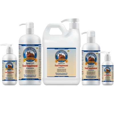 Salmon Oil helps keep your dog’s skin healthy! Healthy skin generally results in less itching and less shedding. The health condition of your dog’s skin and coat is influenced by the contents and balance of fatty acids in the diet. The ratio of omega-3 to omega-6 fatty acids in the diet of your dog is important in order to avoid degenerative conditions like hot spots, a dull coat and inflamed, dry and itchy skin. Scientific research supports the optimum ratio of fatty acids in the range of 1:3 to 1:6 (omega-3:omega-6). Grizzly Salmon Oil has a ratio of approximately 8:1 (omega-3: omega-6) and is thus ideally suited for bringing commonly seen ratios in generic and premium dog foods of between 1:10 and 1:20 in line with the target ratio of around 1:5.