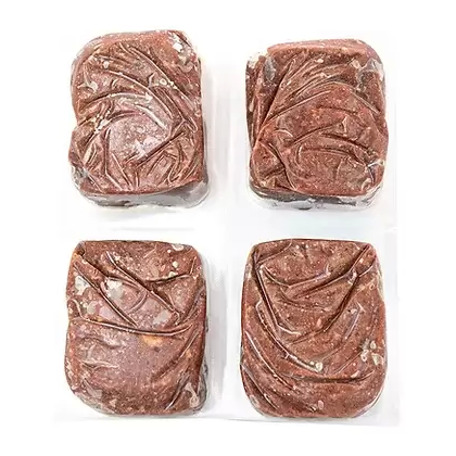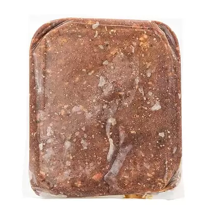 Keep product frozen until ready to use. Defrost the package in a leak-proof container (reduces the risk of cross-contamination!) and leave in the refrigerator for 24 hours, or until soft through. We recommend serving in a stainless steel bowl as it is easier to clean, and does not have surface pores that may collect bacteria. Partially eaten food should be put back into the refrigerator after 20 minutes. Wash hands, utensils, and all contact surfaces with soap and hot water.